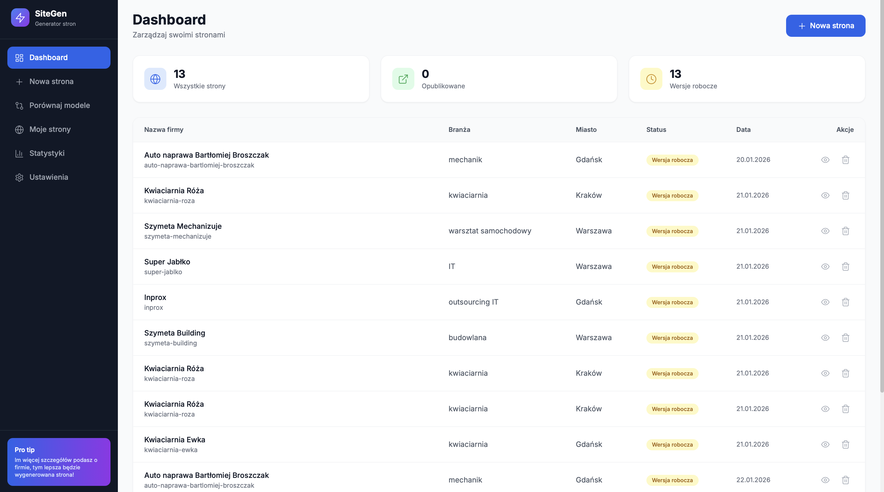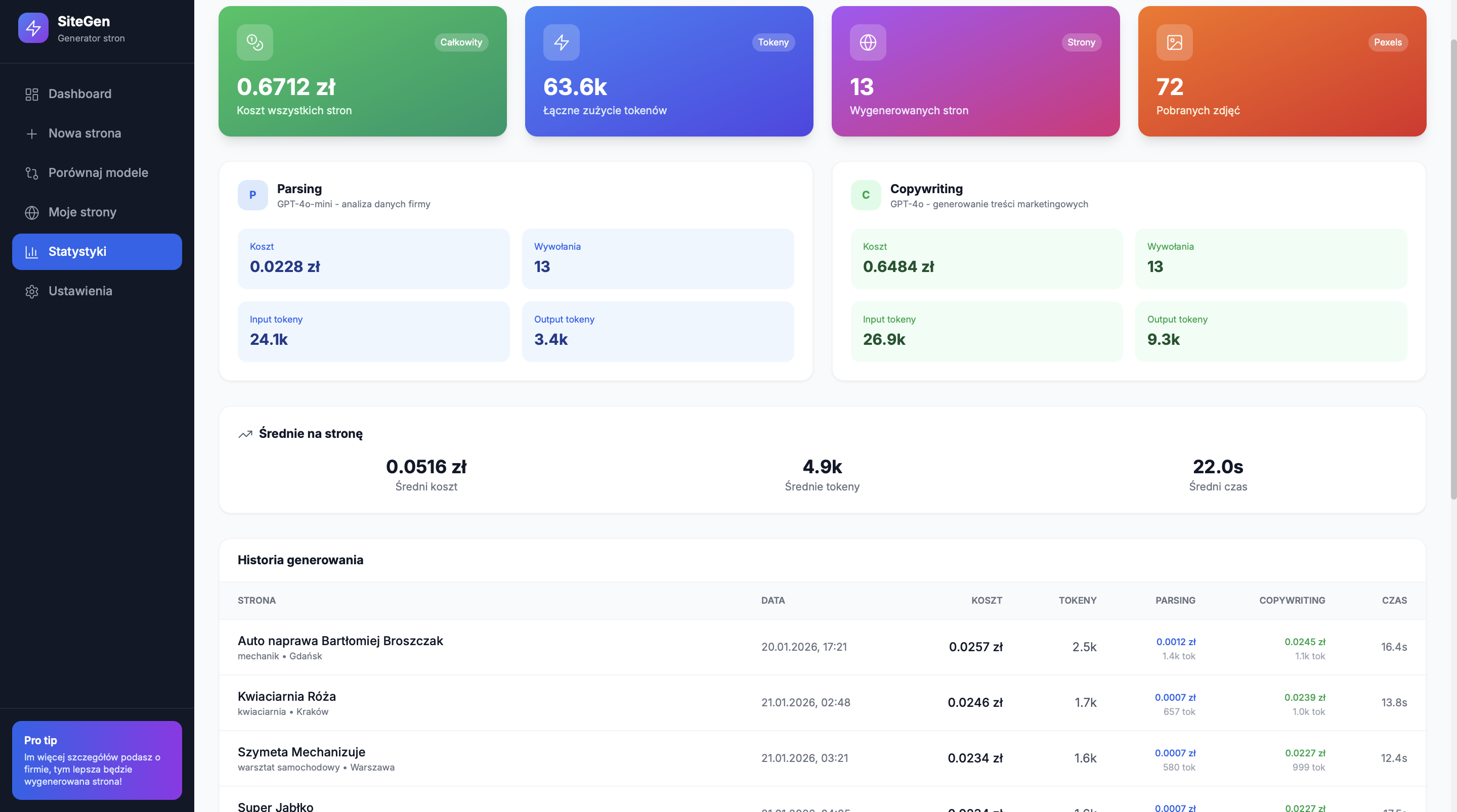 Jako freelancer zauważyłem, że nikt nie chce kupować "kota w worku". Dzwonienie z ofertą strony WWW nie działa. Napisałem SiteGen (Next.js + AI). Wpisuję nazwę firmy z Google Maps, a system generuje kompletną stronę i wrzuca ją na tymczasowy FTP (ważny 7 dni).